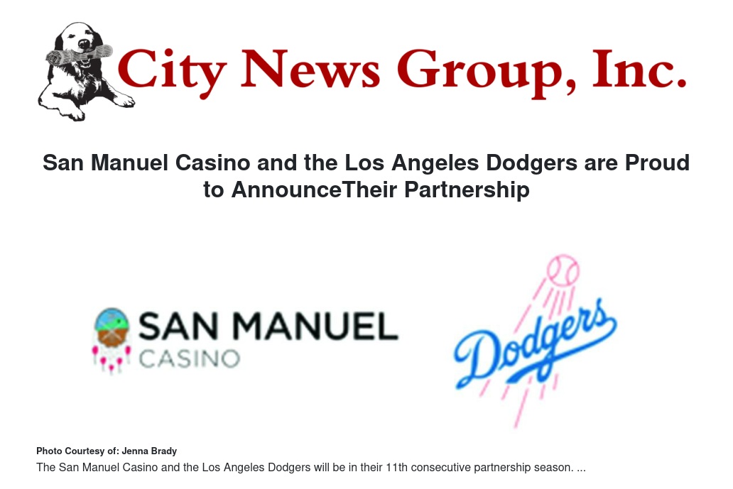 San Manuel Casino and the Los Angeles Dodgers have announced an extension of their partnership for the eleventh consecutive season. This sponsorship will continue the collaborative efforts between San Manuel Casino and the Los Angeles Dodgers of giving back to communities in the Inland Empire.