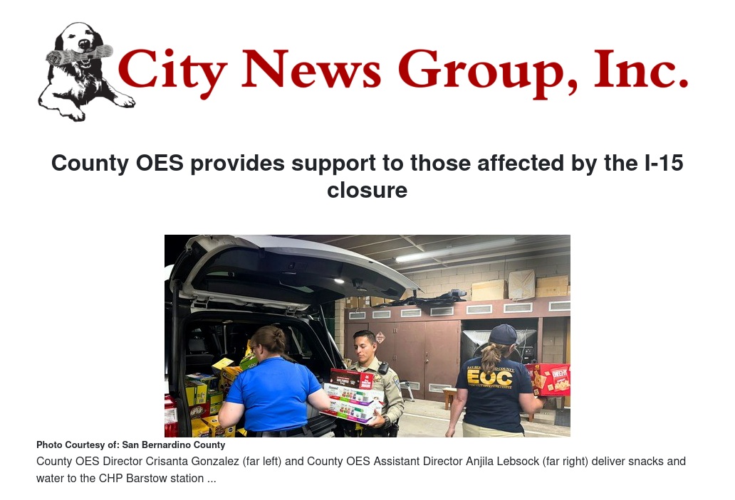 County OES provides support to those affected by the I-15 closure by William Redman - City News Group, Inc.