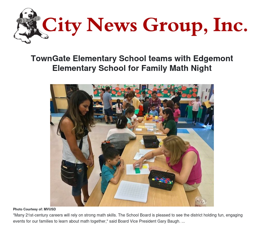TownGate Elementary School teams with Edgemont Elementary School for Family Math Night by - City News Group, Inc.