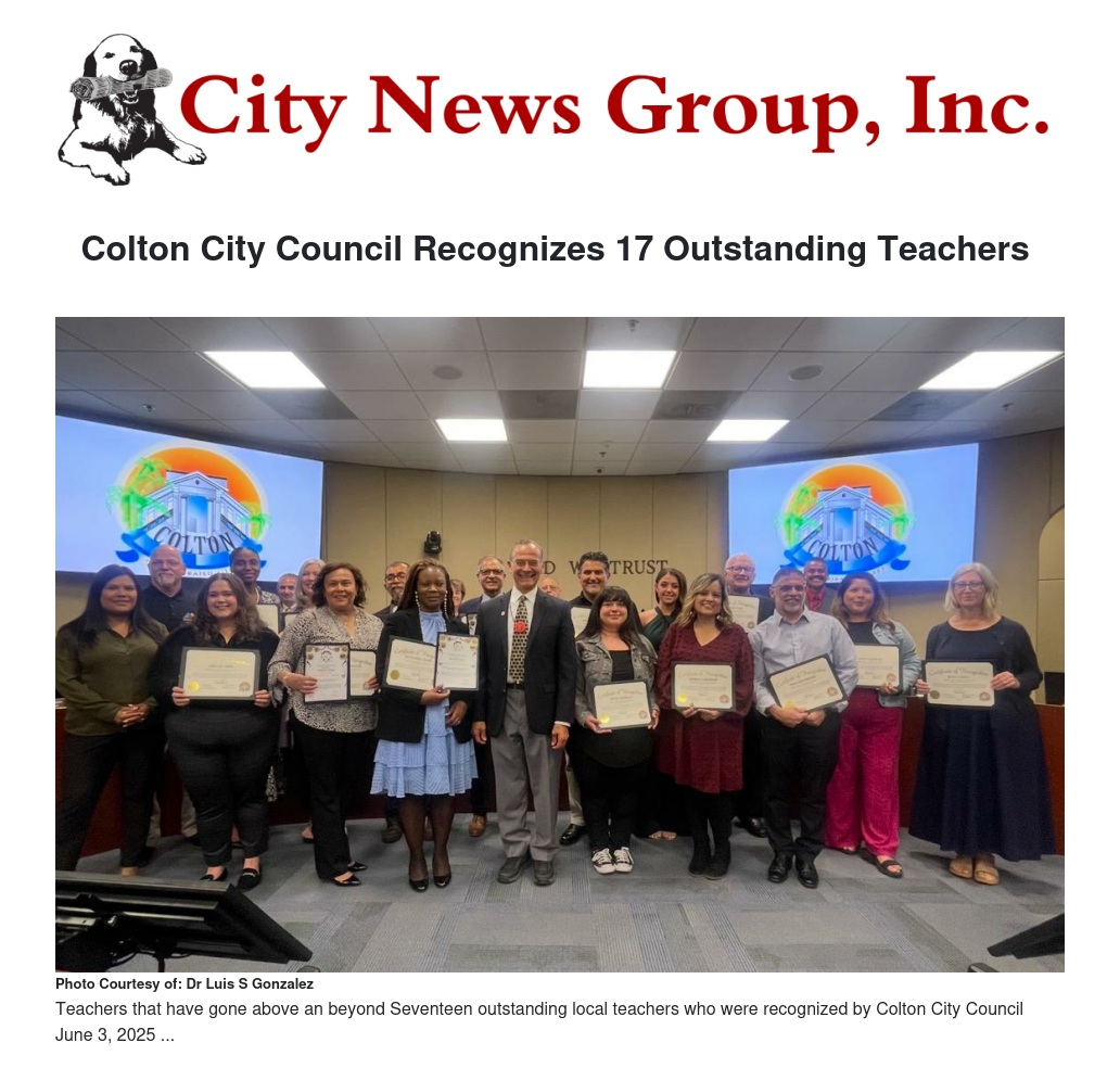 Colton City Council Recognizes 17 Outstanding Teachers  by Dr Luis S Gonzalez - City News Group, Inc.