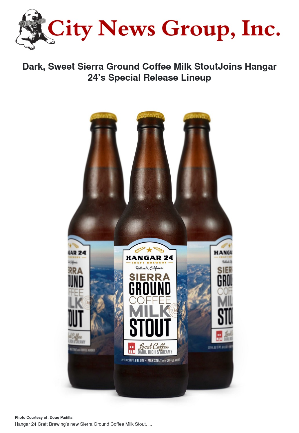 Sierra Ground Coffee Milk Stout will make its first appearance Saturday, Dec. 9 at the Redlands Taproom, and Wednesday, Dec. 13 at the Lake Havasu Brewery & Grill. It is scheduled to hit the shelves of fine craft beer retailers on Monday, Dec. 11.
