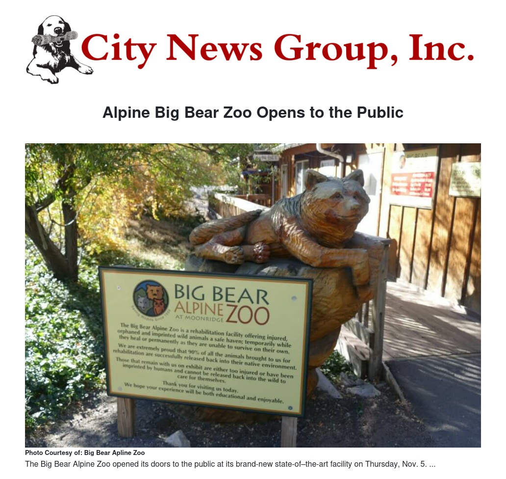 Alpine Big Bear Zoo Opens to the Public by Amy Ledbetter - City News Group, Inc.