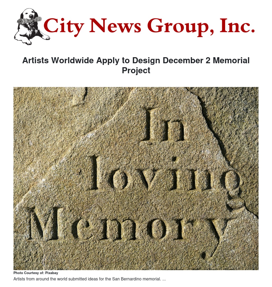 In May, the December 2 Memorial Committee invited artists, designers and architects locally and internationally to submit their ideas for the memorial which will be located on the east side of the County Government Center in San Bernardino.