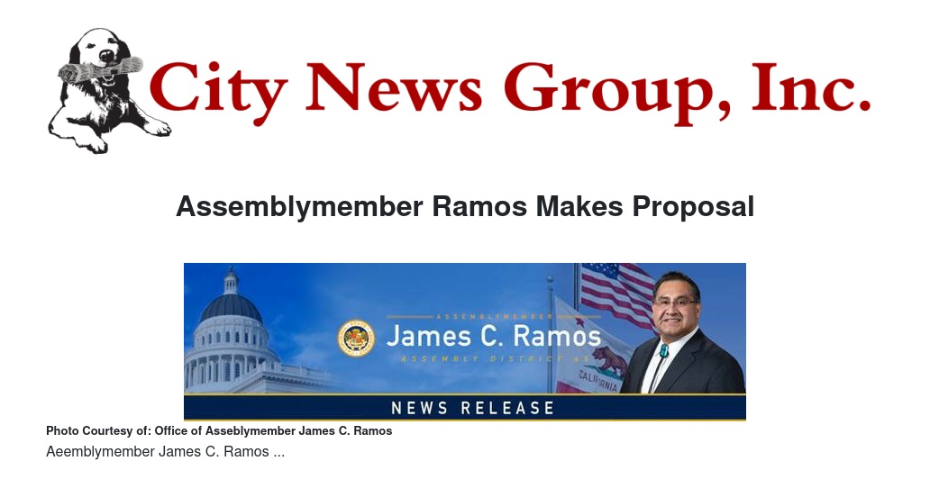 Assemblymember Ramos Makes Proposal by Office of Asseblymember James C. Ramos - City News Group, Inc.
