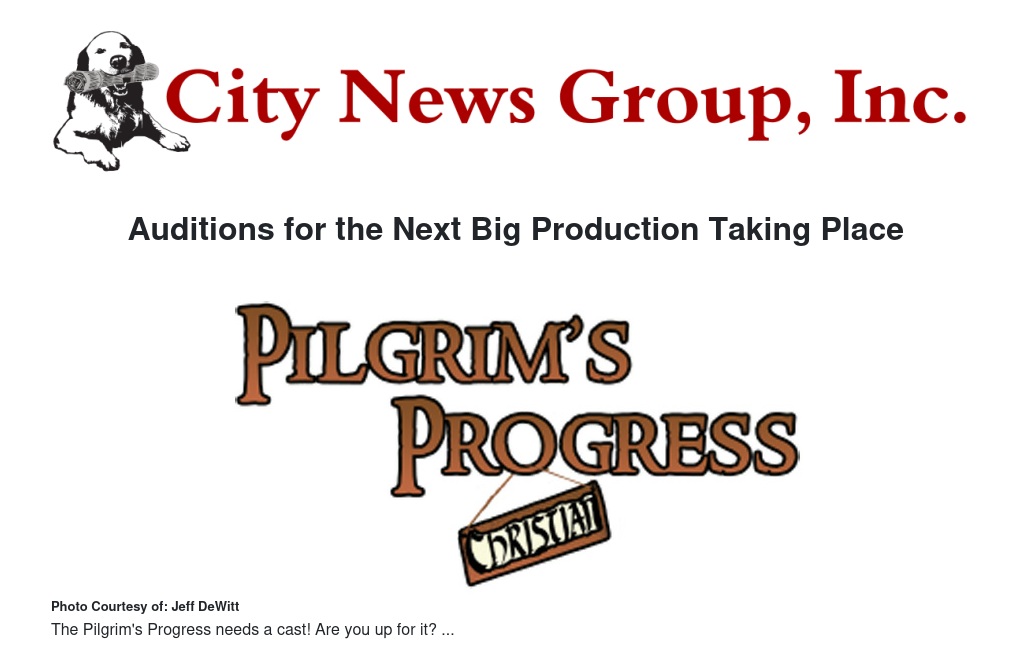 Open auditions for LifeHouse Theater’s original musical, “Pilgrim’s Progress,” directed by award-winning talent Jennifer M. DeWitt, will be Thursday, January17, 2019 from 6:00 PM to 9:00 PM at LifeHouse Theater, 1135 N. Church Street, Redlands.