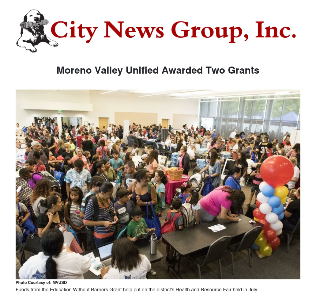 Moreno Valley Unified Awarded Two Grants by Ariel Dun - City News Group, Inc.