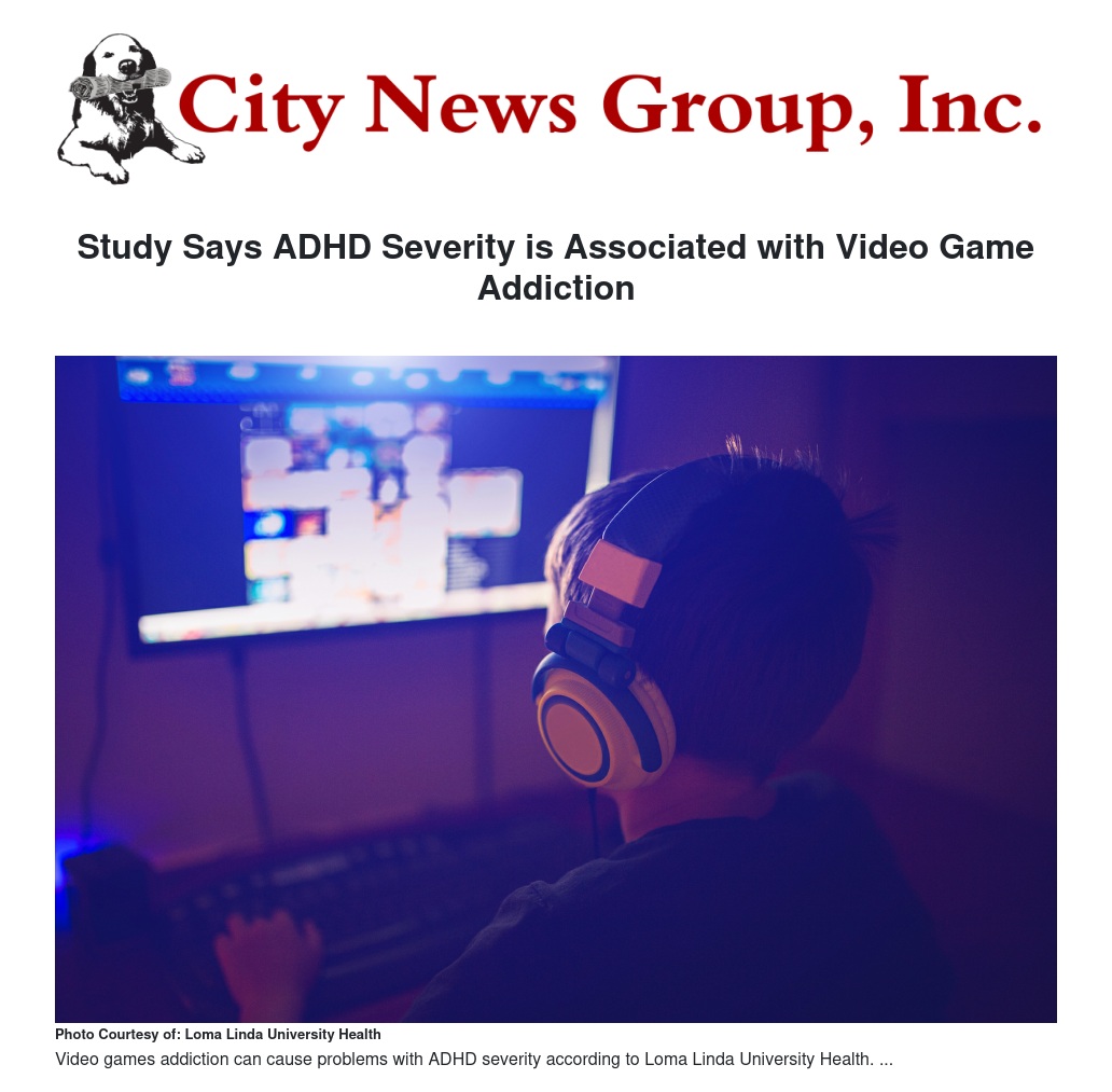 Study Says ADHD Severity is Associated with Video Game Addiction by Janelle Ringer - City News Group, Inc.