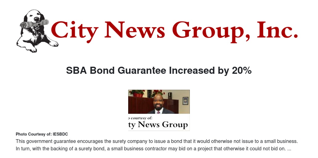 SBA Bond Guarantee Increased by 20%