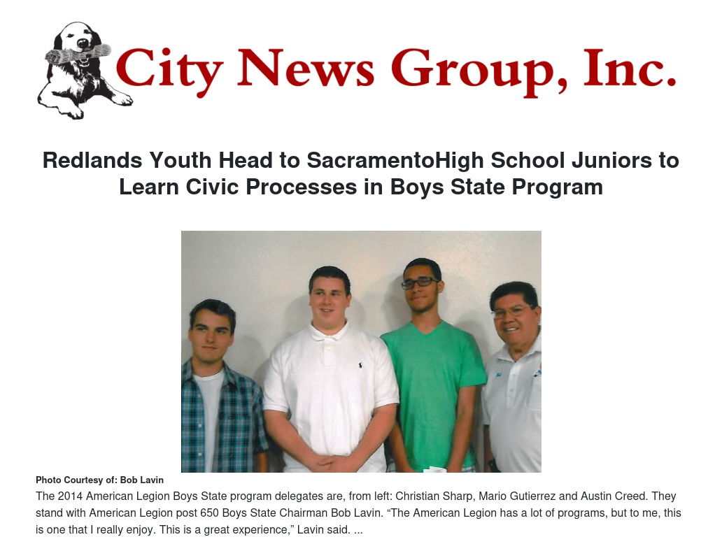 Redlands Youth Head to SacramentoHigh School Juniors to Learn Civic Processes in Boys State Program