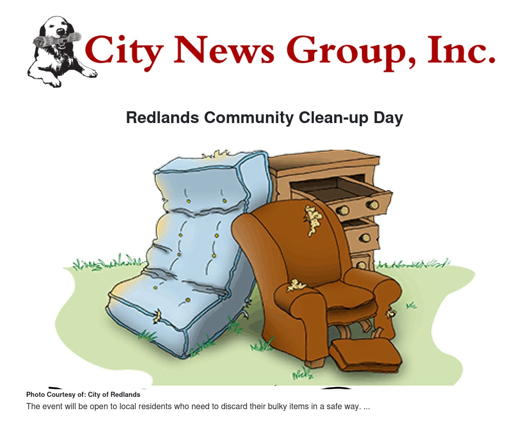 The City of Redlands Facilities and Community Services Department will hold a Community Cleanup Day at the City landfill, 2151 Nevada St., from 8 a.m. to noon Saturday, July 31.