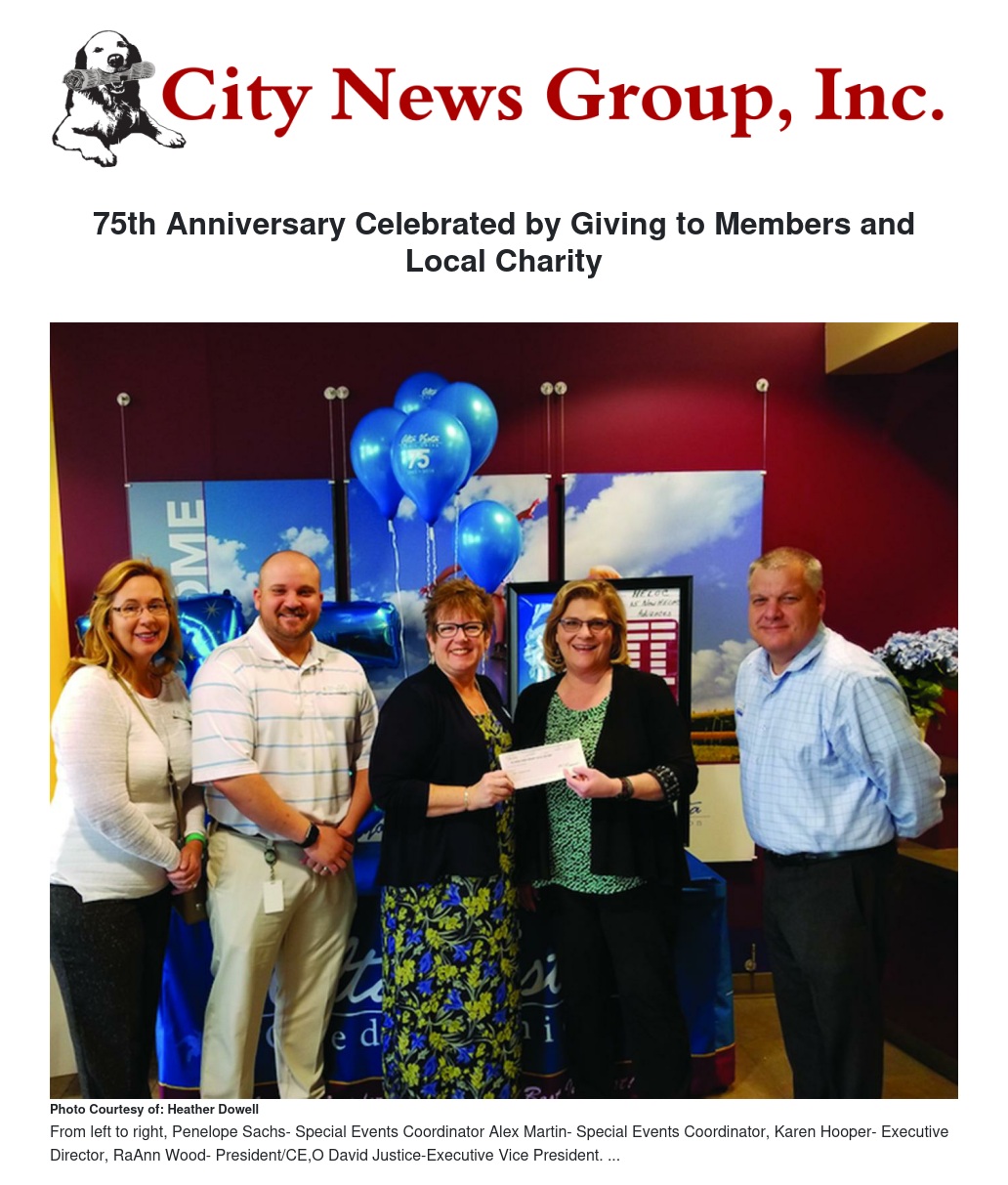 75th Anniversary Celebrated by Giving to Members and Local Charity by Heather Dowell - City News Group, Inc.