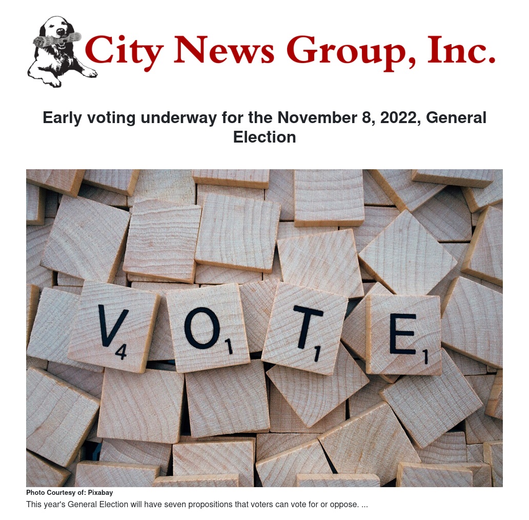 Early voting underway for the November 8, 2022, General Election by Vivian Johnson - City News Group, Inc.