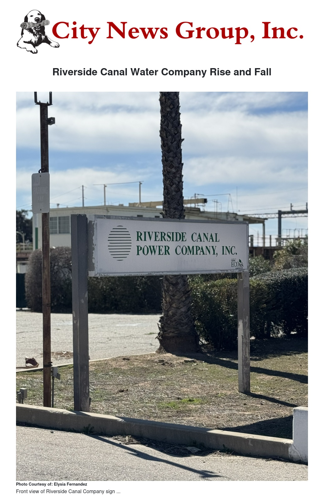 Riverside Canal Water Company Rise and Fall by William Cortez - City News Group, Inc.