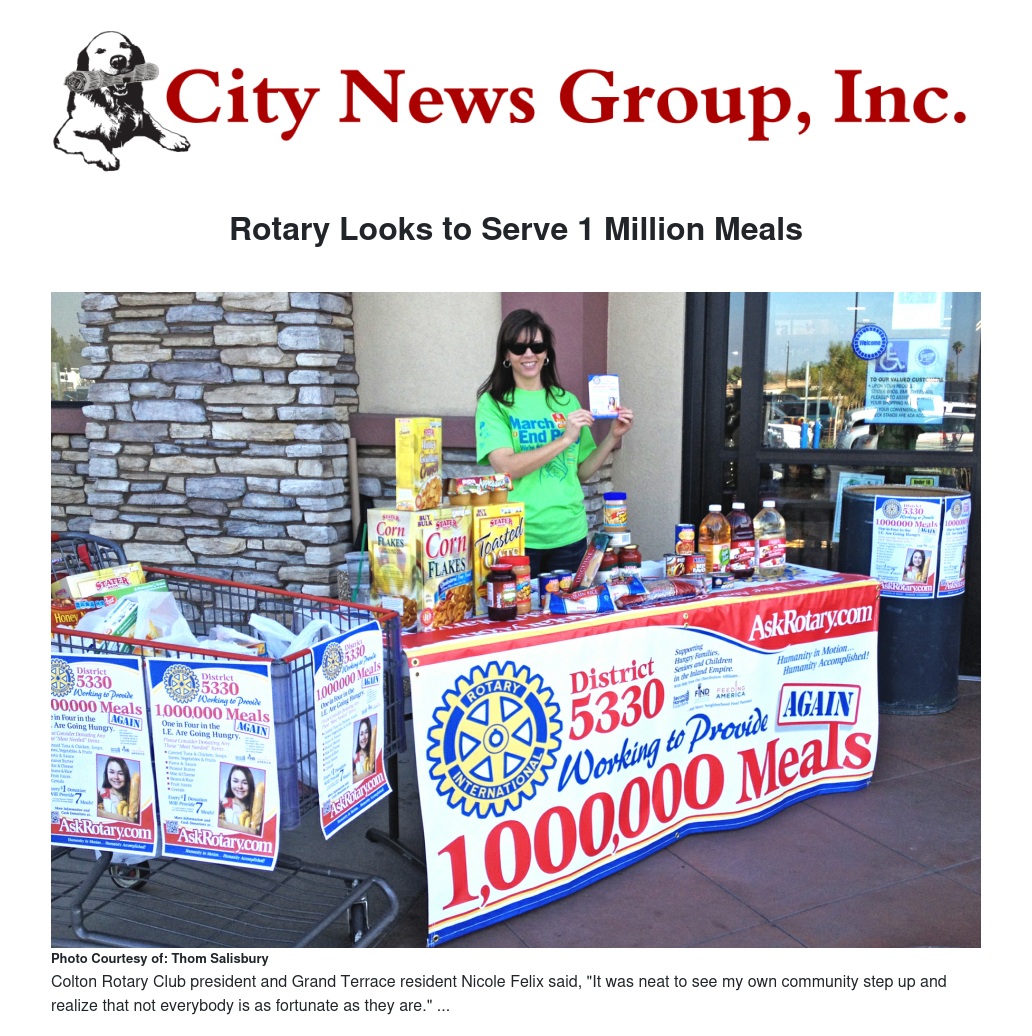 The Million Meals campaign began last year and sets out to provide 1 million meals to residents in need. Felix explained that during last year's campaign, the Colton Rotary Club donated money to the cause but this year decided to actively seek donations.