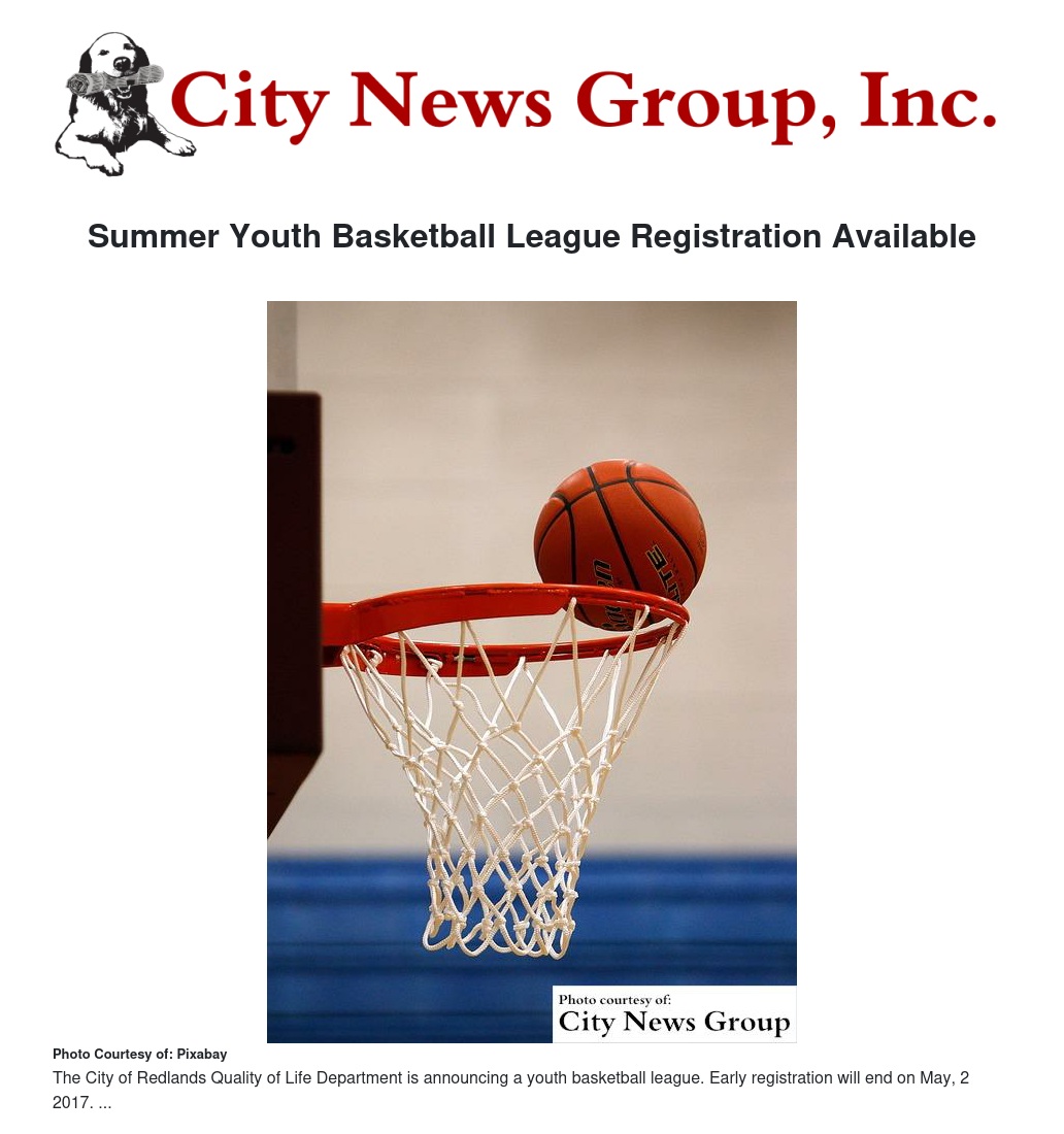 REDLANDS>> The City of Redlands Quality of Life Department has announced the formation of a youth basketball league.