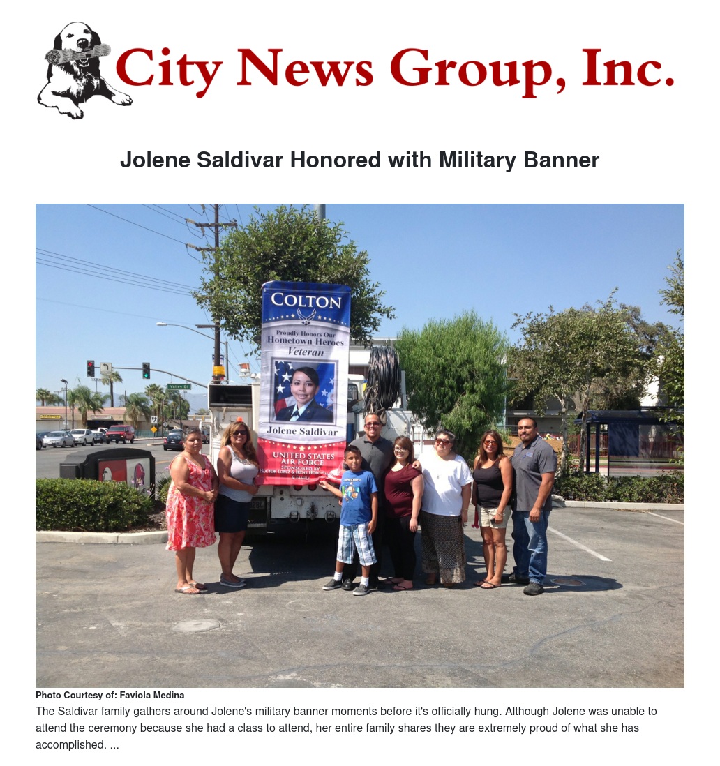 Coltonite Jolene Saldivar was recently honored with a military banner installation ceremony for her service in the Air Force.