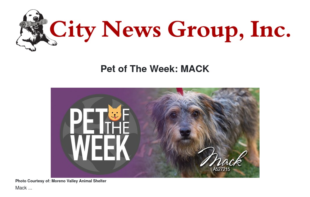 If you would like to make Mack or any pet from the Moreno Valley Animal Shelter part of your family, please contact the Moreno Valley Animal Shelter at 951.413.3790 or visit www.moval.org/pets.