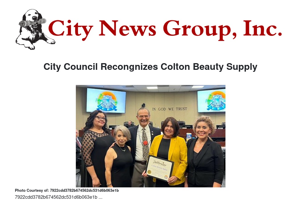 At the recent Council meeting Sept. 19, Council Member Dr.G (Dr Luis S .González) presented the Business Recognition Award to Colton Beauty Salon on behalf of the City Council. Maria Bobabilla, owner of Colton Beauty Salon has operated her business in Colton since 2017, and has worked at this same establishment ten years before purchasing the business.