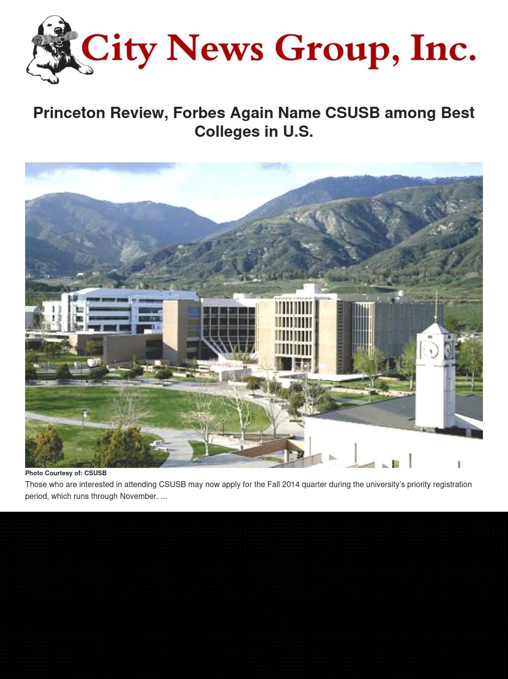 The Princeton Review selected Cal State San Bernardino to its “Best in the West” section of its website feature, “2014 Best Colleges: Region by Region.” CSUSB is among just 124 institutions that The Princeton Review chose for its “Best in the West” list and one of only seven California State University campuses that were included at the Best Regional Colleges Web page.