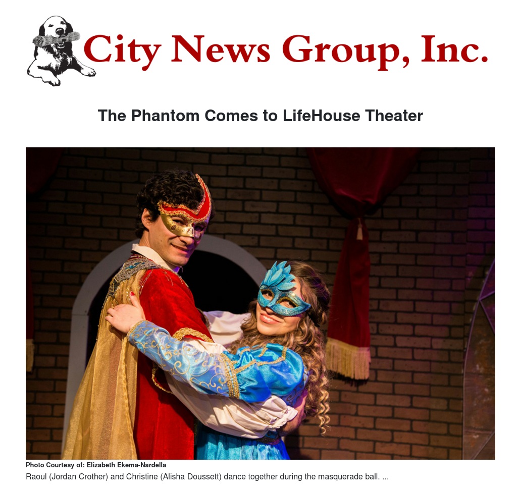 In addition to the regular run, LifeHouse Theater is presenting a special performance of “Phantom of the Opera” on Valentine’s Day, February 14. This specially priced performance includes a pre-show refreshment period that features an interactive time with the cast, a rose for each woman in attendance, and a special dessert at intermission. Ticket prices for this special are $40 each.