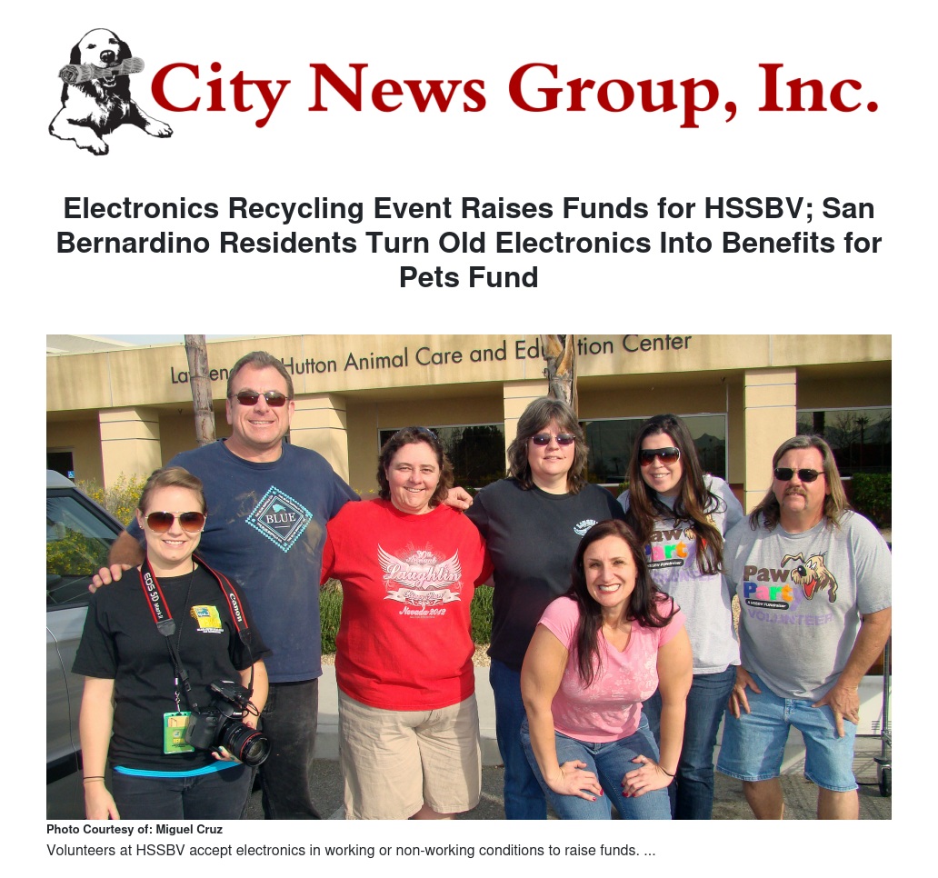 Electronics Recycling Event Raises Funds for HSSBV; San Bernardino Residents Turn Old Electronics Into Benefits for Pets Fund