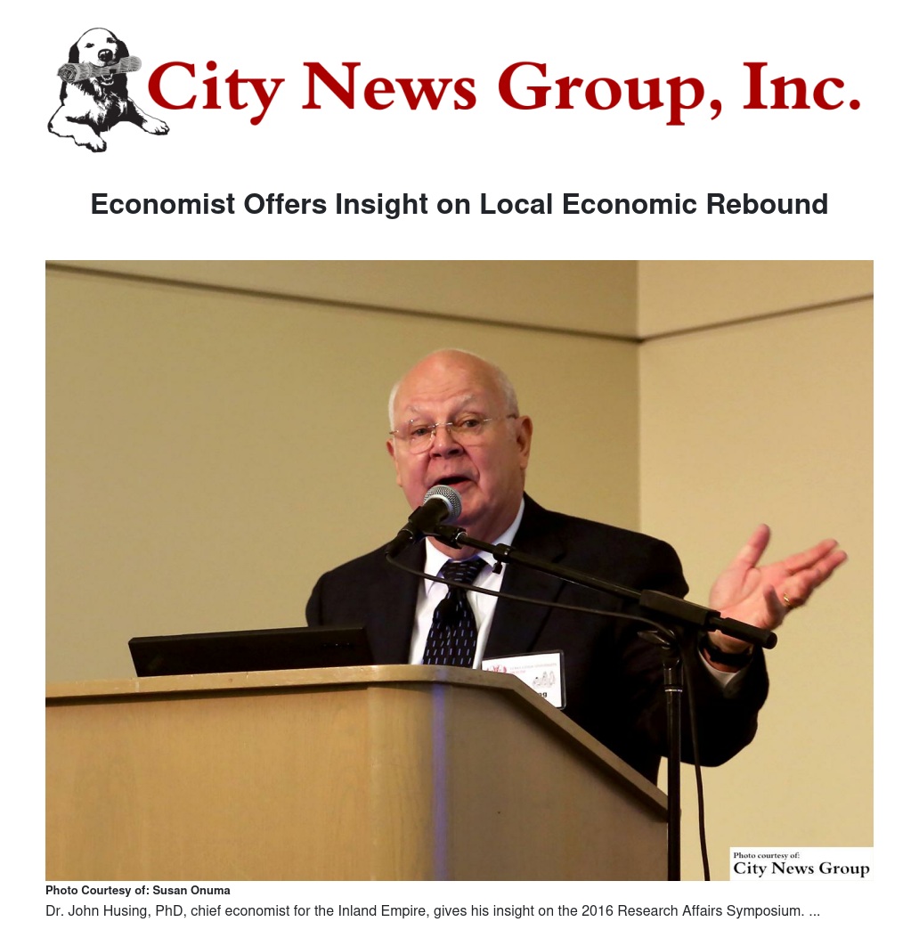 Dr. John Husing, PhD, chief economist for the Inland Empire, made the remarks at the 2016 Research Affairs Symposium, which was held last month on the university campus.