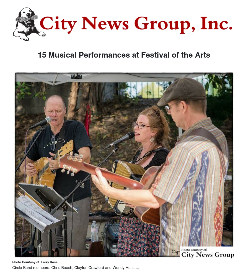 Circle Band members Chris Beach, Clayton Crawford and Wendy Hunt perform an eclectic blend of jazz, blues and folk music. The musical duo of Matthew James and Madelin Amaral, known as Do Wrong Right plays folk, preform Americana and jazz.