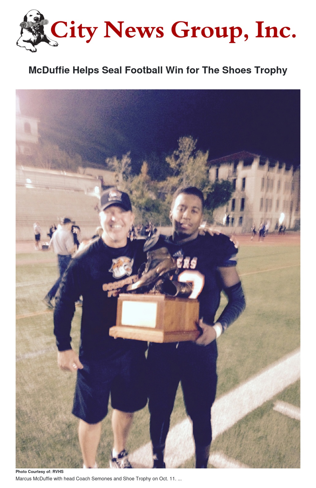 The Battle for the Shoes Story: Since 1946 the Whittier Poets and Occidental Tigers have played for a pair of bronzed cleats, worn by 1940 Whittier graduate Myron Claxton, in a rivalry game that has grown to be called the “Battle for the Shoes.”