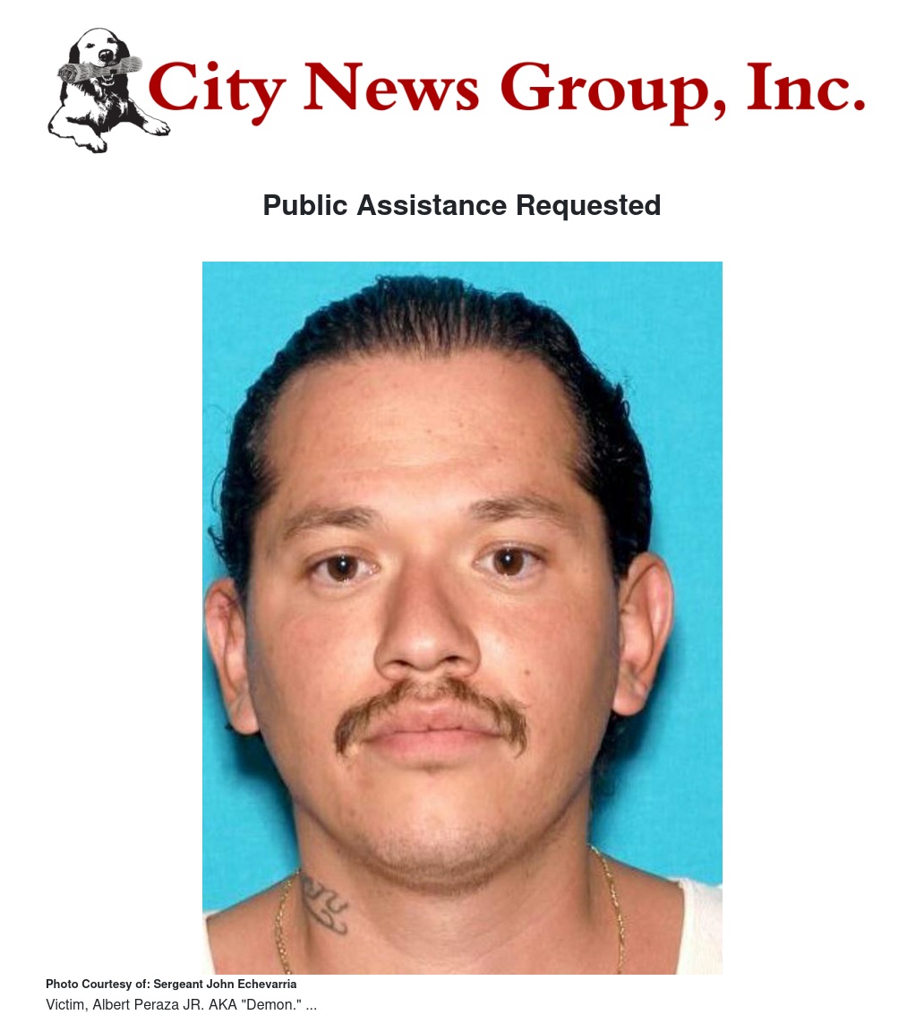 On March 27th, 2019 at approx. 2000 hours, SBPD Officers responded to shots fired at 101 W. Baseline Street in the city of San Bernardino. Upon arrival they located Albert Peraza Jr. AKA "Demon" suffering from a gunshot wound. Detectives are currently following up on leads, but are seeking further information from the public. If you have any information about the shooting death of Albert Peraza Jr, please contact Det. Brian Lewis at the San Bernardino Police Department (909) 384-5762 or Sgt. Tello at (909) 648-5784.