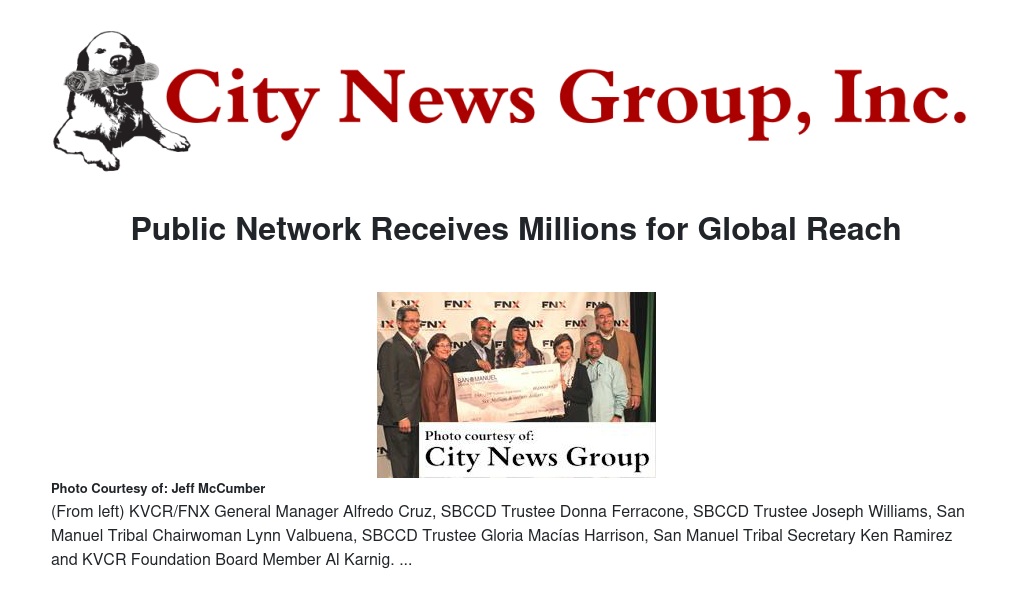 Presenting stories and content unique to Native American and world indigenous peoples, FNX was created locally in San Bernardino by founding partners San Manuel Band of Mission Indians and PBS/KVCR in 2011. It is currently available in 12 states and is also available via satellite throughout the country over the Public Television Interconnect System.