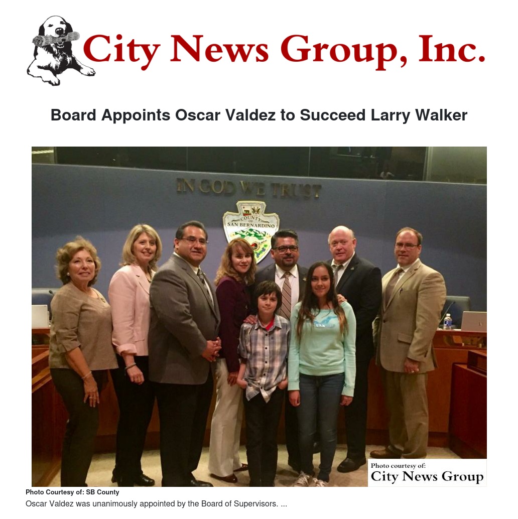 The Board of Supervisors has unanimously appointed Oscar Valdez to fill the remainder of Larry Walker's term as the County's Auditor-Controller/Treasurer/Tax Collector who plans to retire on March 5 of this year.