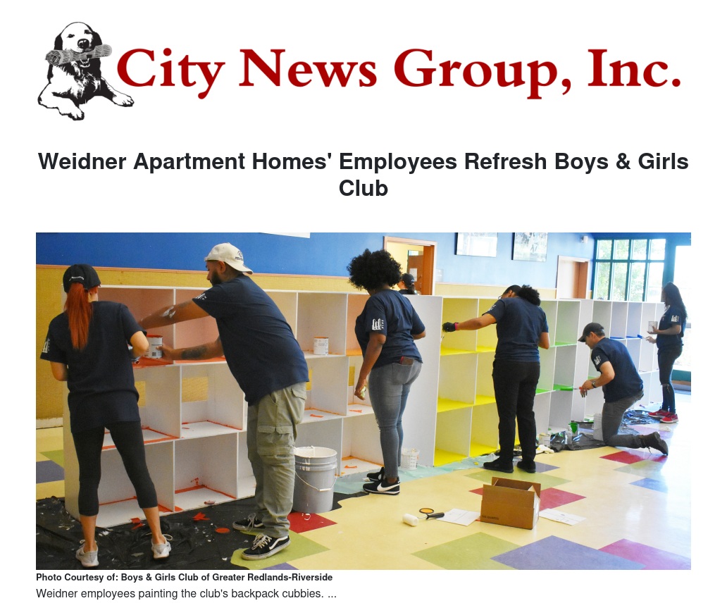 Sixty Weidner Apartment Homes employees volunteered to fix up Boys & Girls Clubs of Greater Redlands-Riverside on Wednesday, Oct. 2.