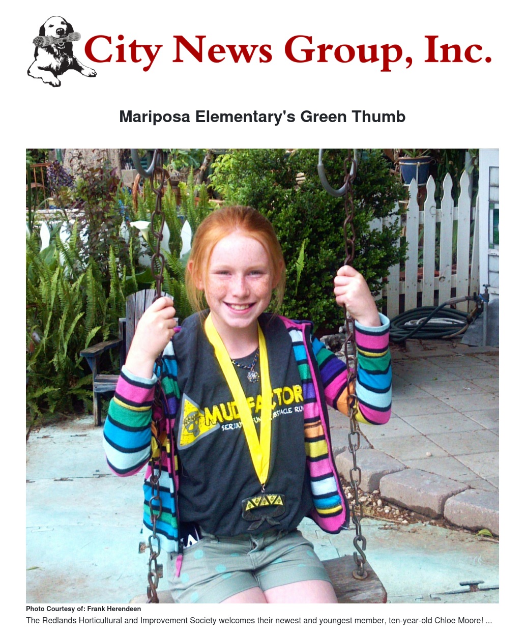 Meet Chloe Moore, Redlands Horticultural and Improvement Society’s newest and youngest member. She is a ten year old, fourth grade student at Mariposa Elementary School.