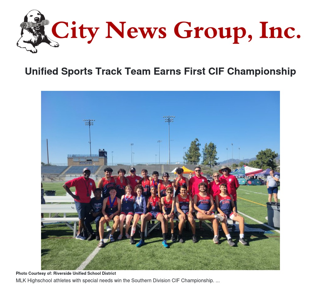 RUSD's Martin Luther King High School recently made Riverside history with the victory of their Unified Sports Track Team, claiming the CIF Southern Division Championship.