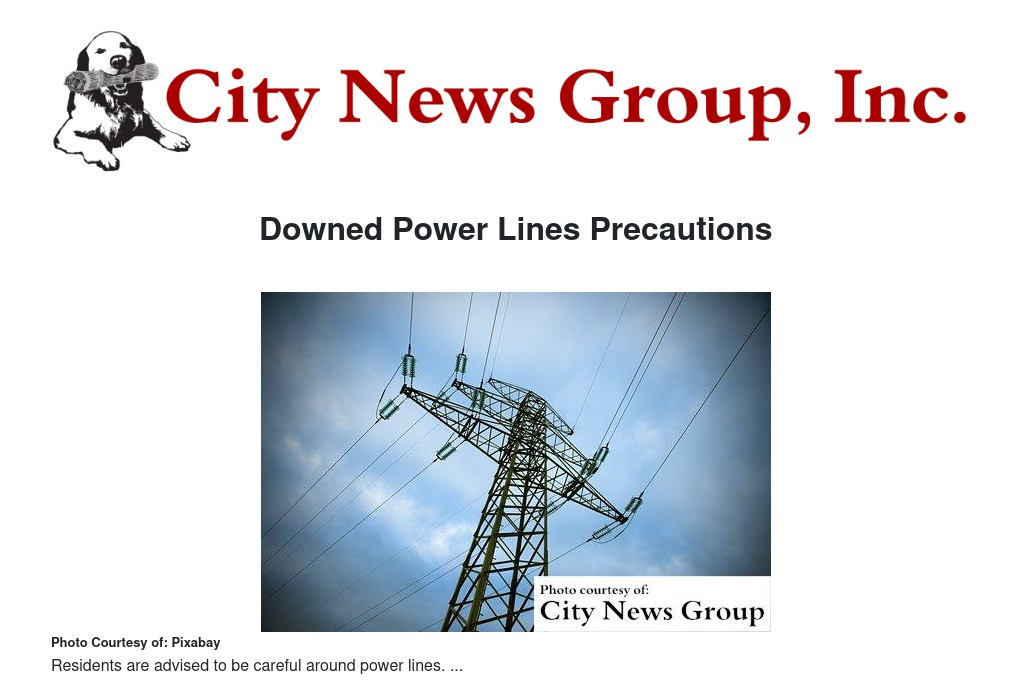 Residents should be mindful of power lines that reach overhead. Those who work in trees or at other jobs that require being lifted into the air should be especially careful that they do not come into contact with power lines. Children should also be advised about climbing to the tops of trees that happen to be near power lines.