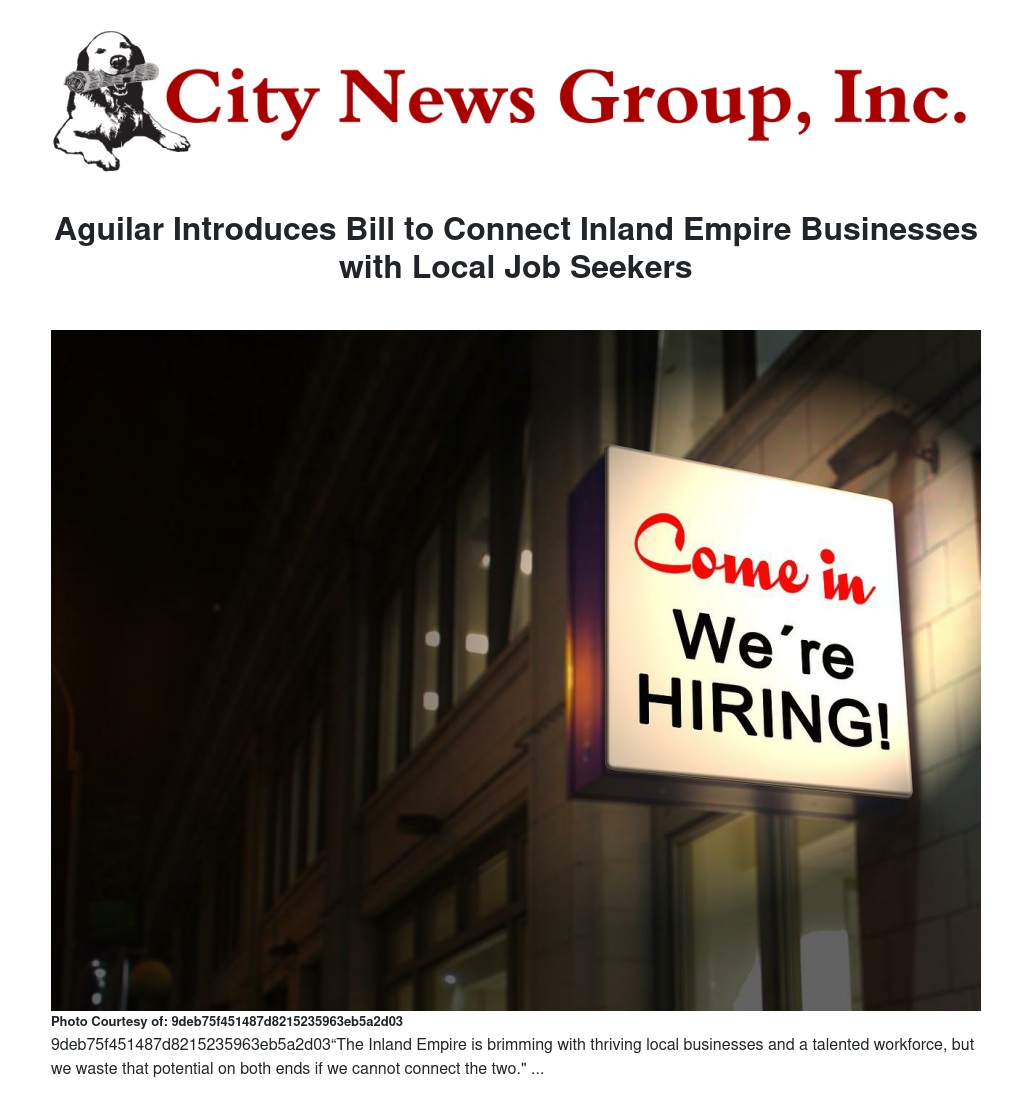 Aguilar Introduces Bill to Connect Inland Empire Businesses with Local Job Seekers by Sarah Weinstein - City News Group, Inc.