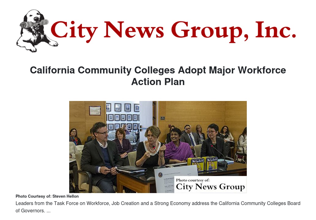 The California Community College Board of Governors approved unanimously—and one would have to add enthusiastically—all 25 recommendations of its Task Force on Workforce, Job Creation and a Strong Economy at the Governors’ November meeting, which was held at Mt. San Antonio Community College Monday, Nov. 30, in Walnut.