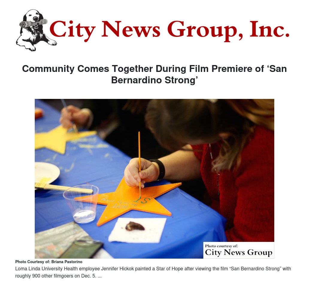 A documentary about a community wanting to find hope in a time of tragedy, “San Bernardino Strong” took filmgoers back to that dreaded day just over one year ago when terror struck San Bernardino. Fourteen lives were lost, 22 were injured and countless lives were forever changed.