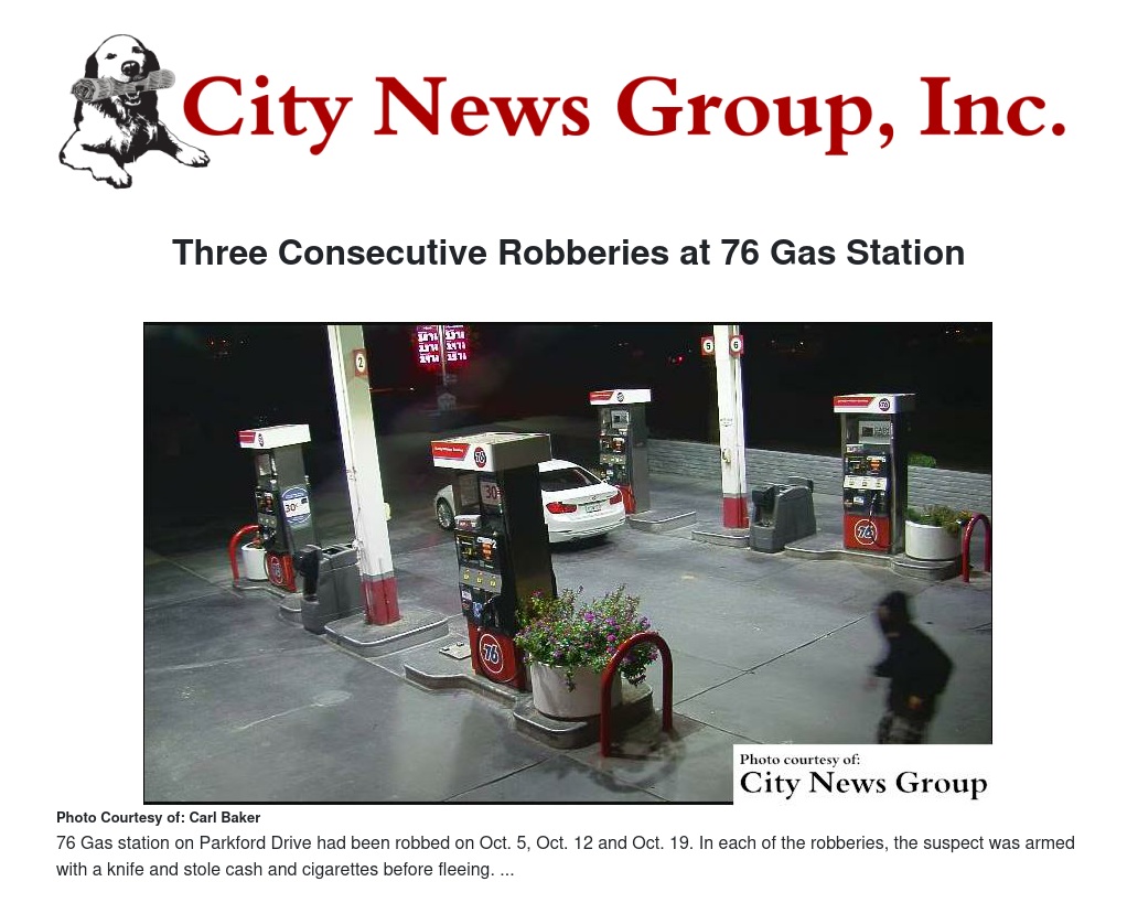 Three Consecutive Robberies at 76 Gas Station