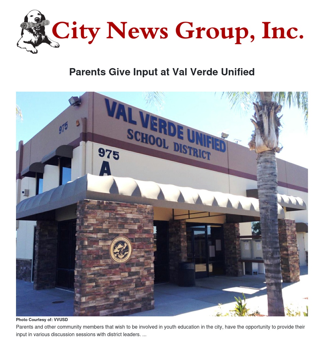 Moreno Valley's Val Verde Unified School District (VVUSD) is currently working with parents and other community members to develop the districts Local Control Funding Formula (LCFF), the state-required procedure for distribution of funds from Proposition 98 to public schools.