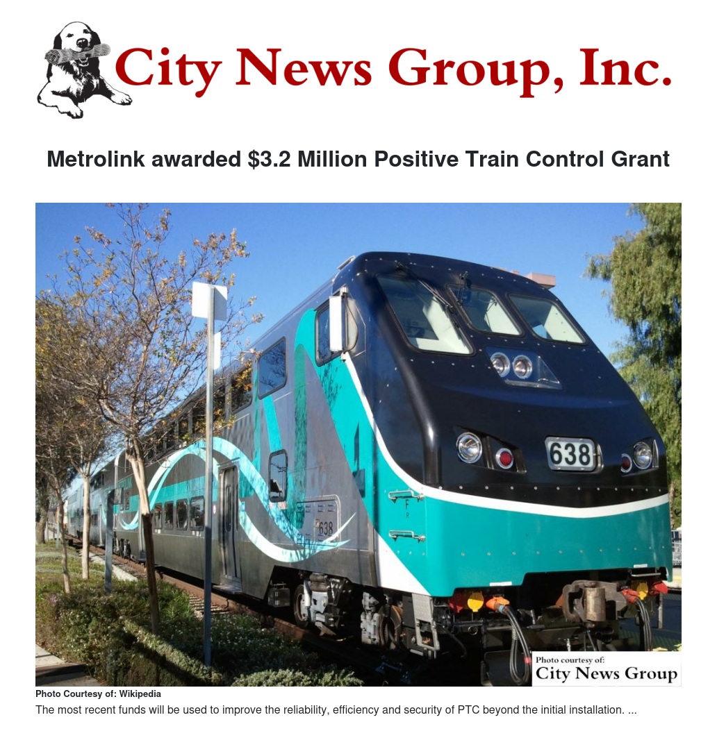 Metrolink awarded $3.2 Million Positive Train Control Grant by Julia Nunez - City News Group, Inc.