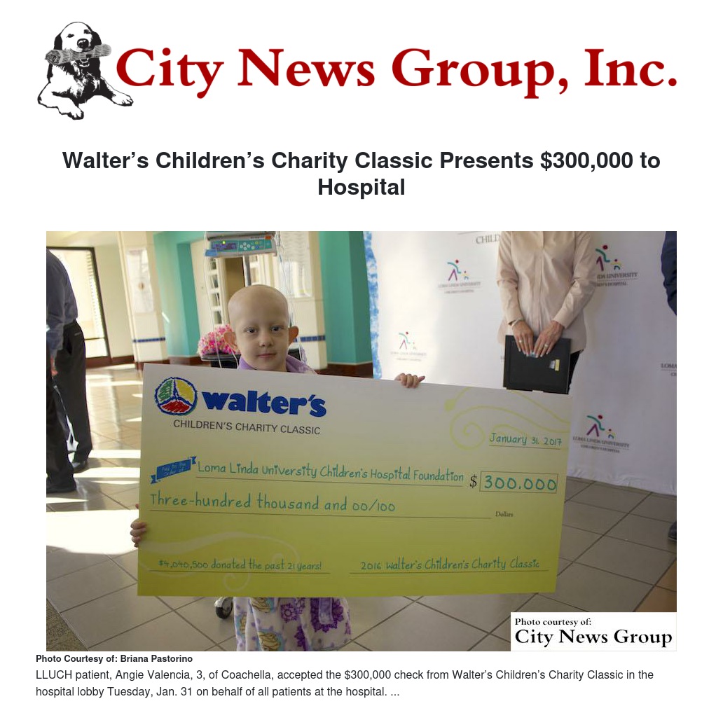 LOMA LINDA>> Loma Linda University Children’s Hospital is now $300,000 closer to a new hospital tower thanks to Walter's Children’s Charity Classic.