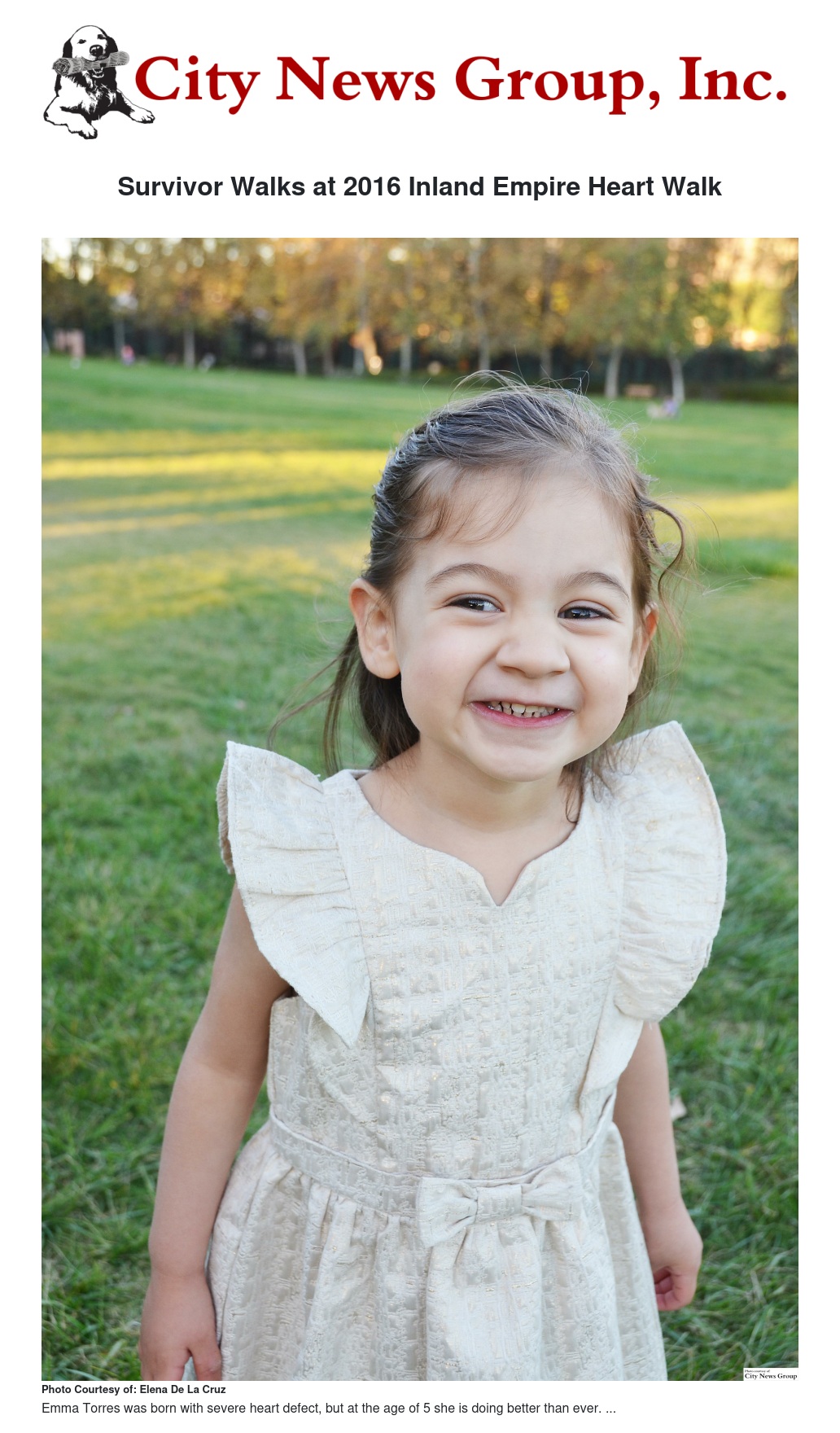 Among the participants included Emma Torres and her family. Torres is a 5-year-old who was born with a severe heart defect.