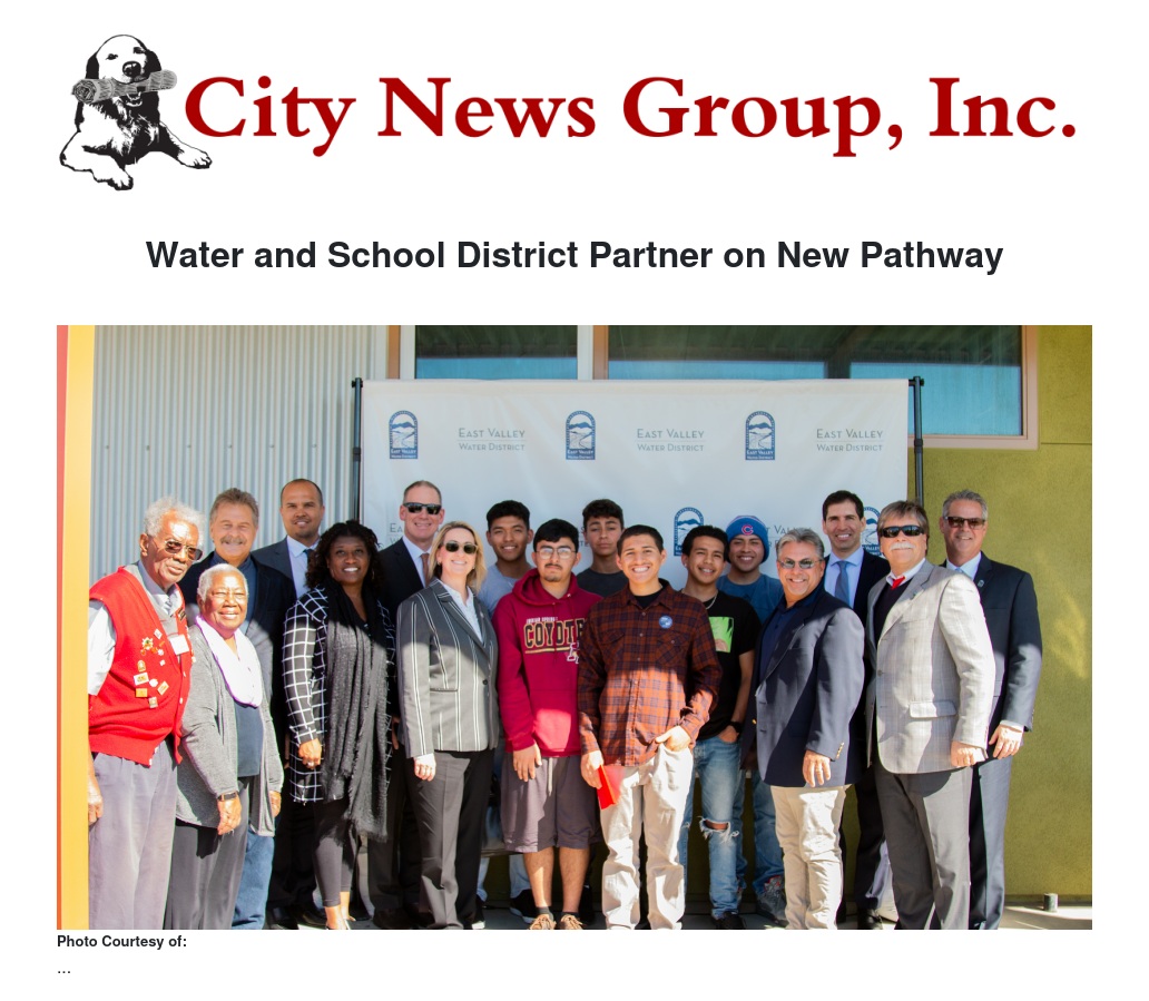 For more information about East Valley Water District or the Water and Resource Management Career Pathway, contact Melissa Valdez, Public Affairs Manager, at mvaldez@eastvalley.org.