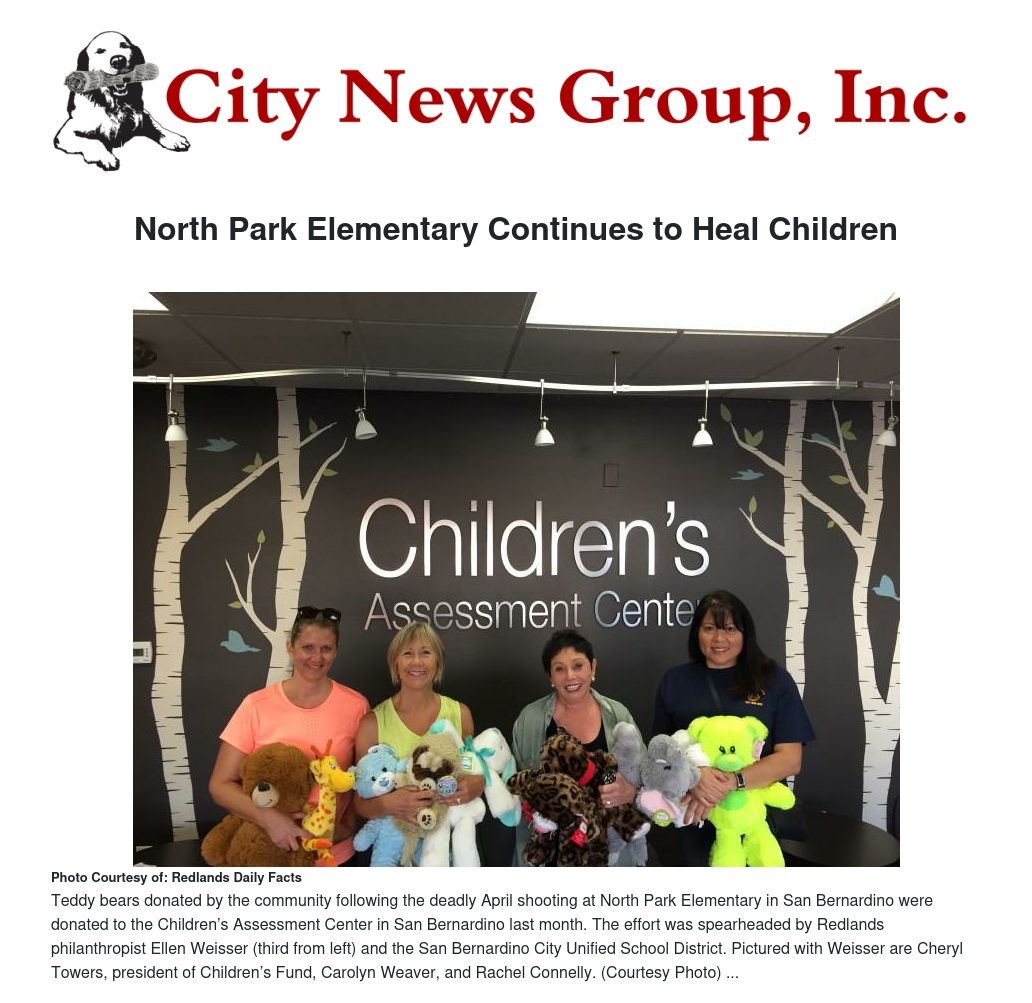 "Donating to the Children’s Assessment Center was a simple decision", Ontiveros said, considering the center looks to heal children in need just as the district meant to do with the bears for North Park students. “At North Park, there are about 600 students. So, the outpouring of support for the kids who were overcoming a tragedy was overwhelming and we had more than we needed to help our kids heal,” she said. “The center interacts with kids who, too, need comfort, and this seemed like the right extension of that idea.”