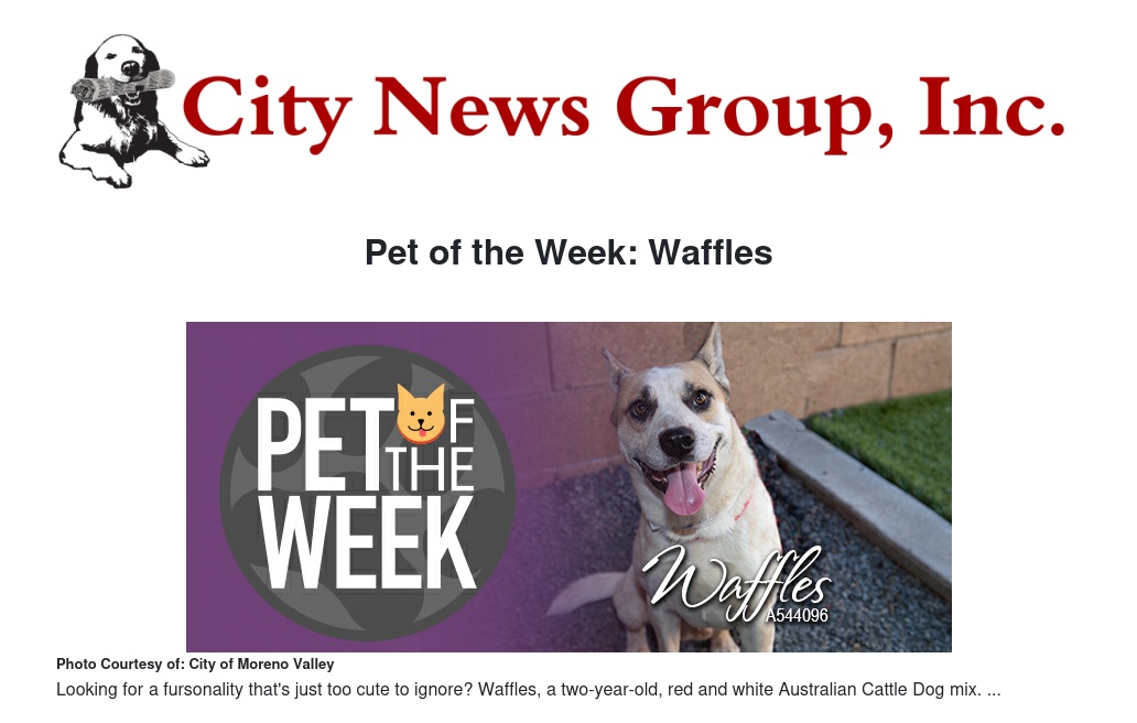 Pet of the Week: Waffles by Ruby Stephenson - City News Group, Inc.