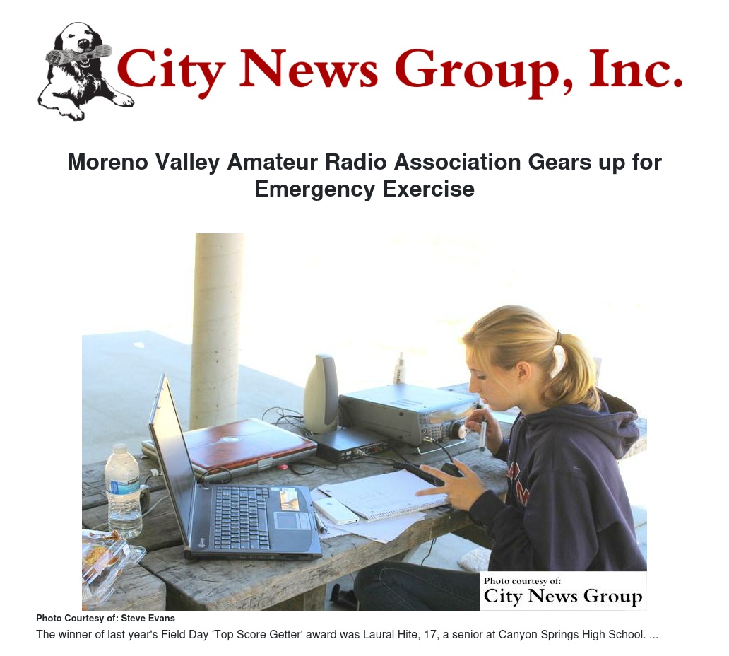 Members of the Moreno Valley Amateur Radio Association will participate in the nationwide amateur radio emergency preparedness, Field Day exercise, June 27 and 28 at Lake Perris SRA.