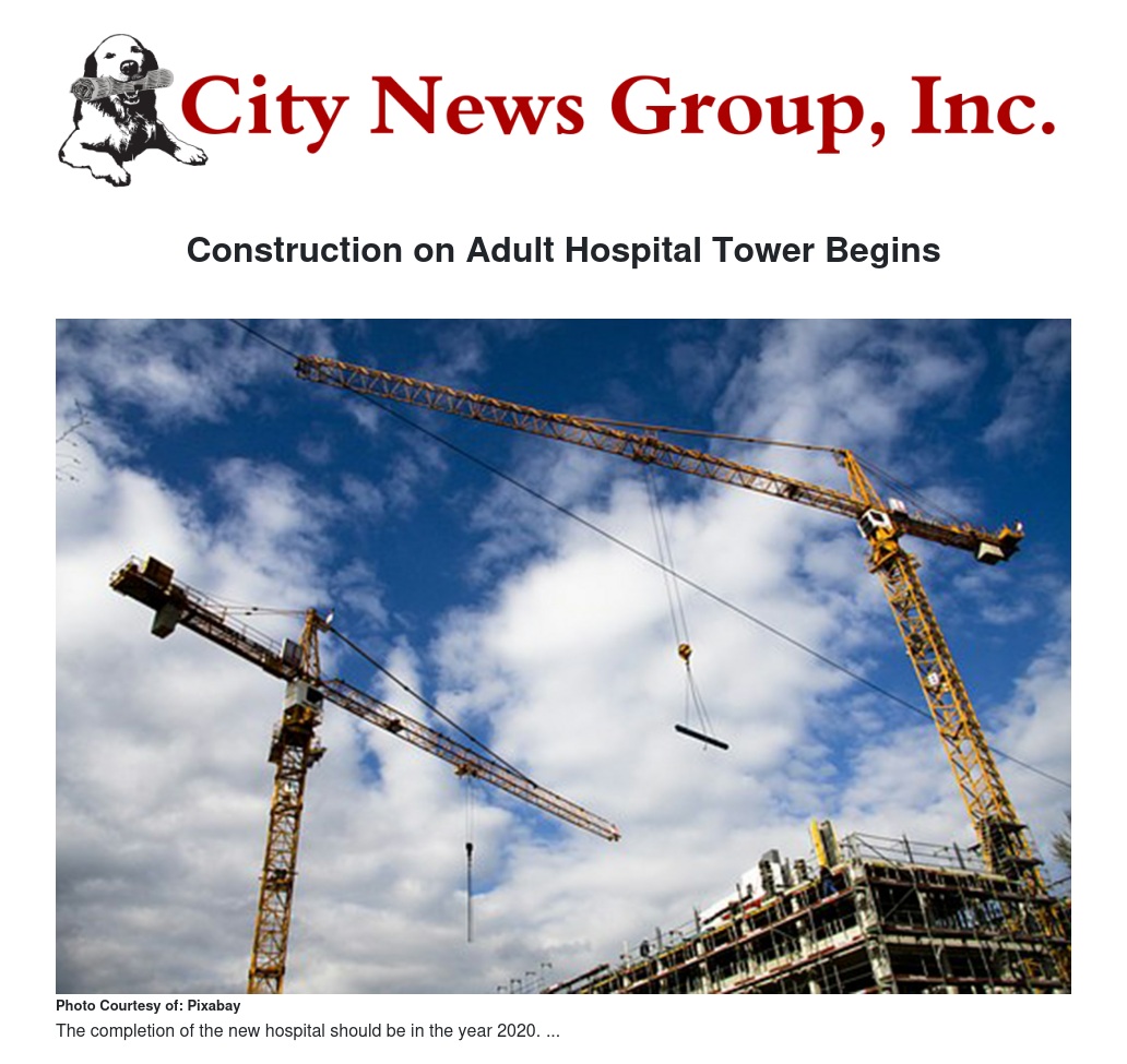 Construction on Adult Hospital Tower Begins by Sarah Boutin - City News Group, Inc.