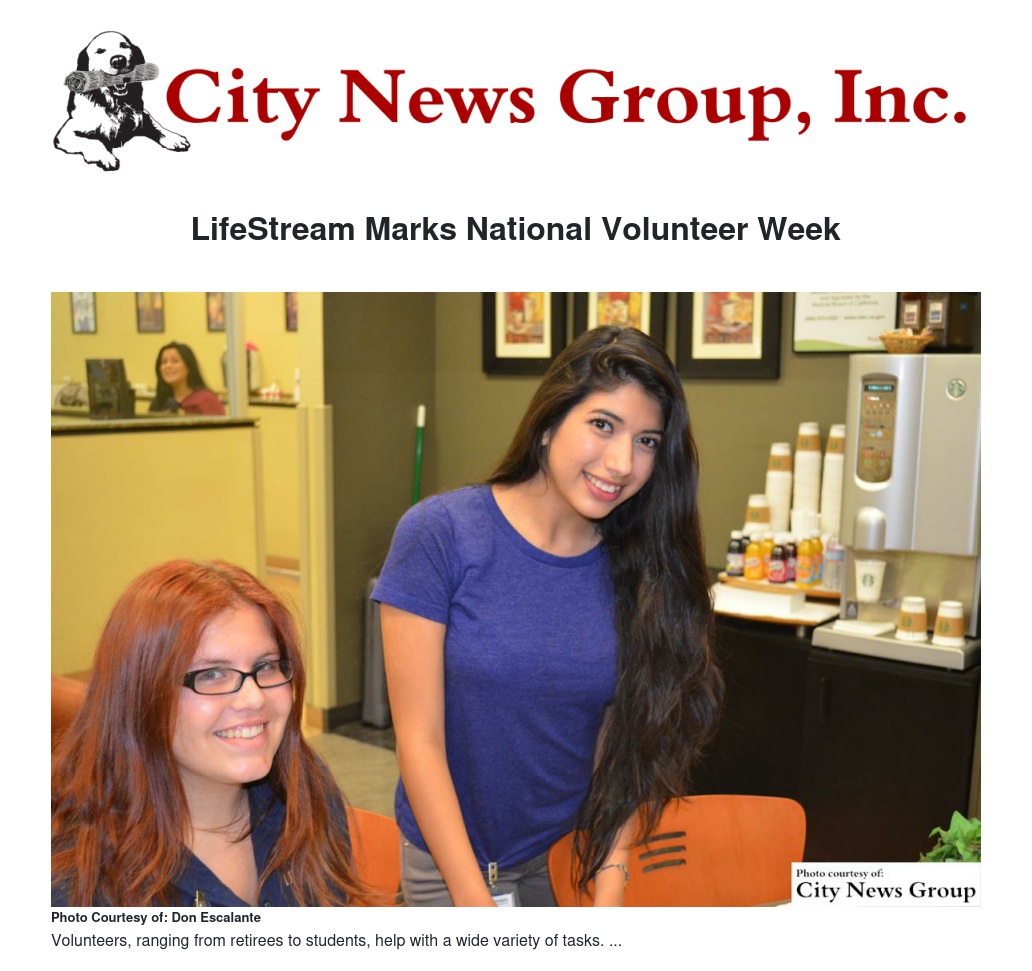 LifeStream blood bank’s Volunteer Services program celebrates National Volunteer Week April 18-22 with special events at LifeStream donor centers in San Bernardino, 384 W. Orange Show Road; and Ontario, 1959 Fourth St.