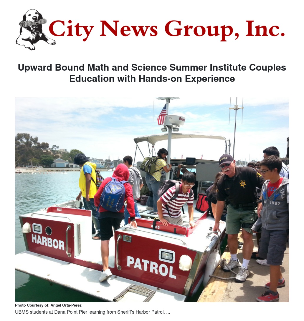 Each Friday, students participate in field experiences which have included visiting the Ocean Institute in Dana Point and the Columbia Memorial Space Museum in Downey, to name a few. So far, program participants have taken trips to the Palm Springs Aerial Tramway and Mount San Jacinto State Park, where students learned about botany, life sciences, plant pathology, and ecosystems. Students also visited Lake Perris State Recreation area where they raced boats they had designed and fashioned of cardboard. Last week, students completed labs at the Ocean Institute, and some of them had the opportunity to spot two blue whales while completing lab experiments onboard The Explorer.